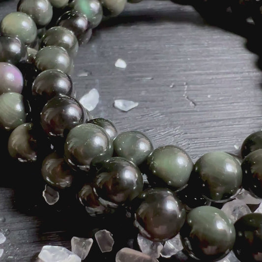 Regenbogen Obsidian Armband | 5mm runde Perlen Vulkanisches Glas