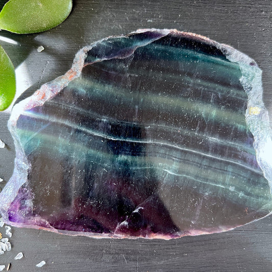 Regenbogenfluorit Platte 15 cm | Farbspiel der Klarheit
