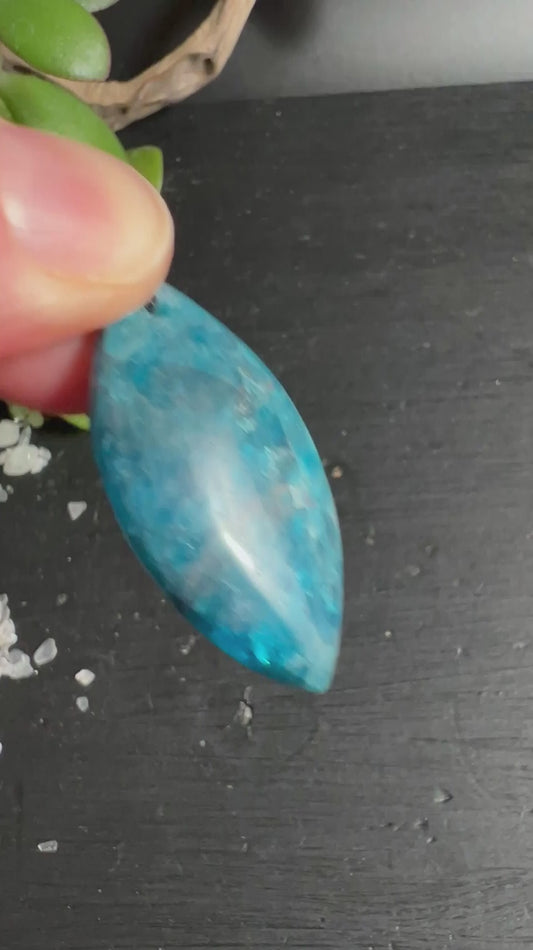 Blauer Fluorit Anhänger 35mm | Gebohrter Trommelstein| Klarheit und Fokus