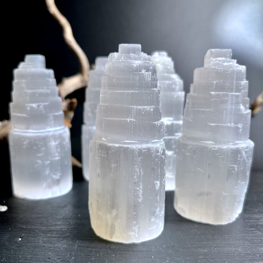 Selenitturm 10cm | Kristall Turm für Reinigung und Meditation | Marokko A-Qualität
