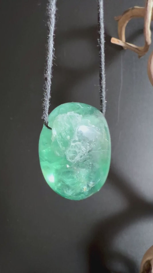 Grüner Fluorit Anhänger ca. 29x20x17mm | Klarheitsstein gebohrt | Unikat mit Band