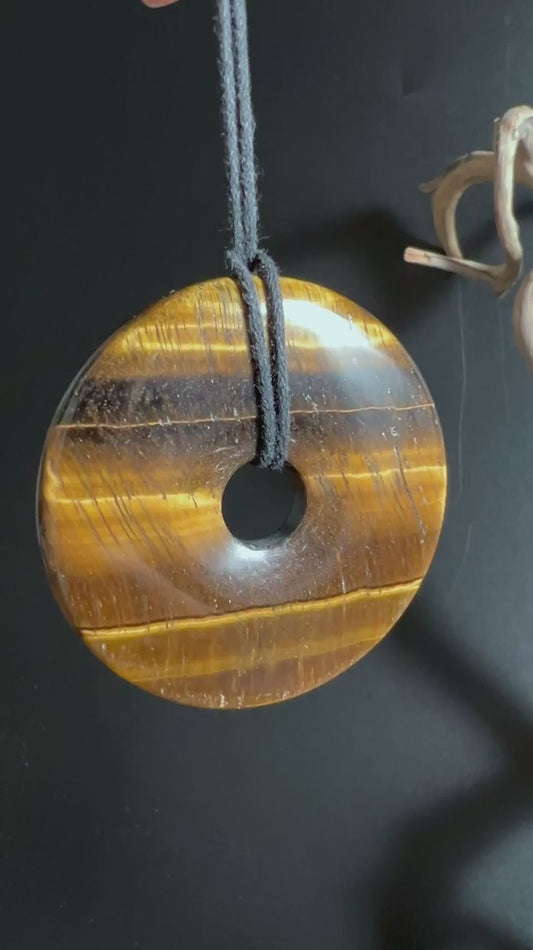 Tigerauge Donut Anhänger 50mm | Schutzstein mit Kette | Namibia Unikat