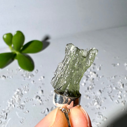 Moldavit Anhänger 33mm mit 925 Sterling Silber