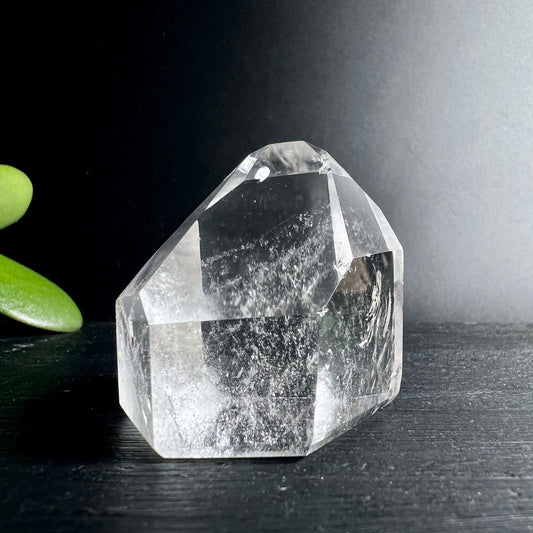 Ein Edelsteinturm ist unten flach geschliffen und stabil, oben läuft er in eine feine Spitze zu. Diese Form macht ihn zum idealen Fokusstein auf deinem Altar oder Schreibtisch.