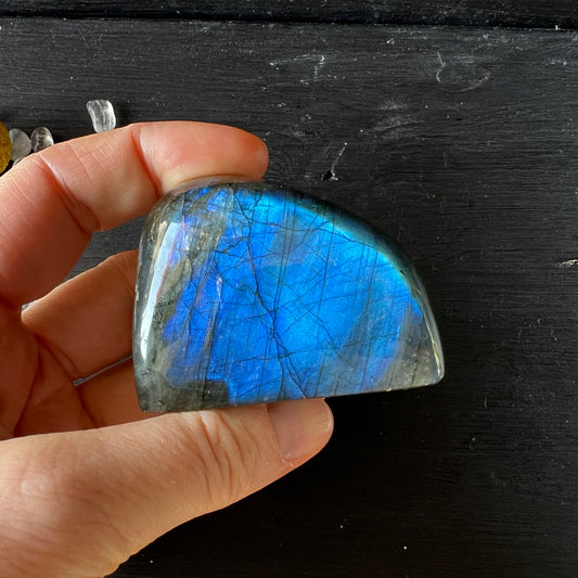 Labradorit Freeform reine blaue Farbe mit Standfläche aus Madagaskar