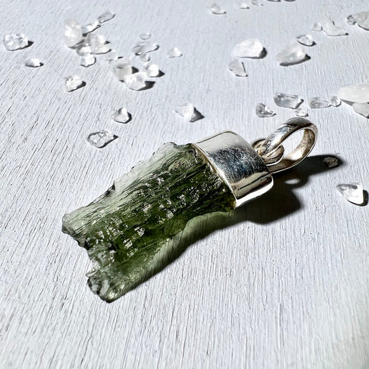 Moldavit Anhänger 33mm mit 925 Sterling Silber