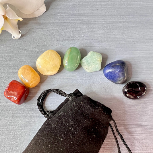 Chakra Steine Set mit Samtbeutel (7 Stück) Trommelsteine