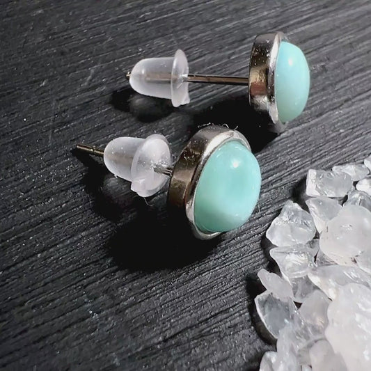 Larimar Earrings 6mm | Atlantis Stone Caribbean Gemstone Jewelry