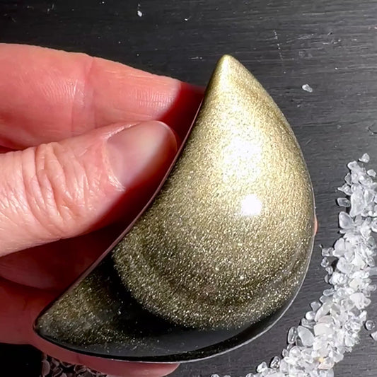 Gold Obsidian Pendant - drilled drop, flat with band approx. 3cm