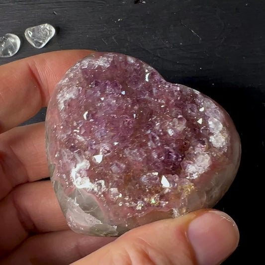 Pink Amethyst Heart from Uruguay 56mm edge polished, many rainbows