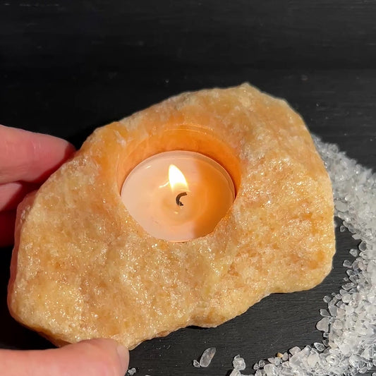 Orange Calcite Tealight Holder, 12x8cm