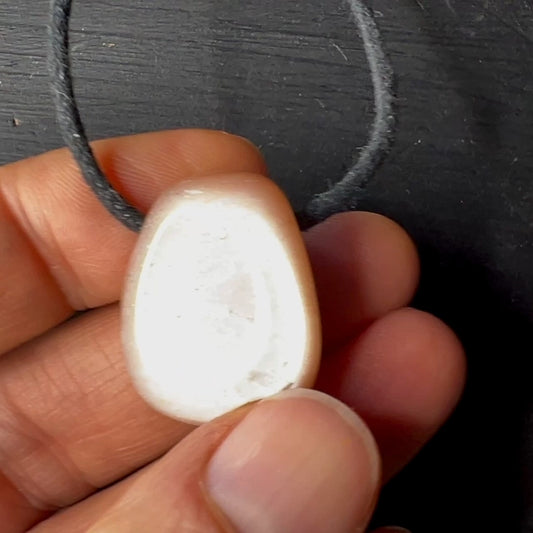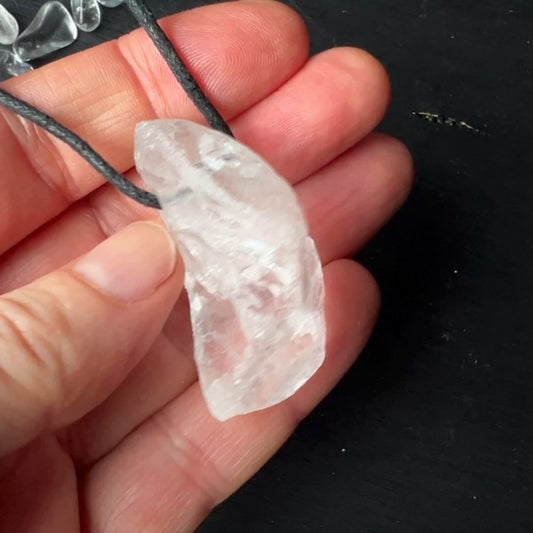 Large, raw rock crystal pendant, drilled, rounded 45mm with ribbon