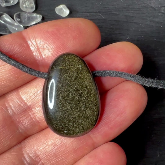 Gold Obsidian Pendant - drilled drop, flat with band approx. 3cm
