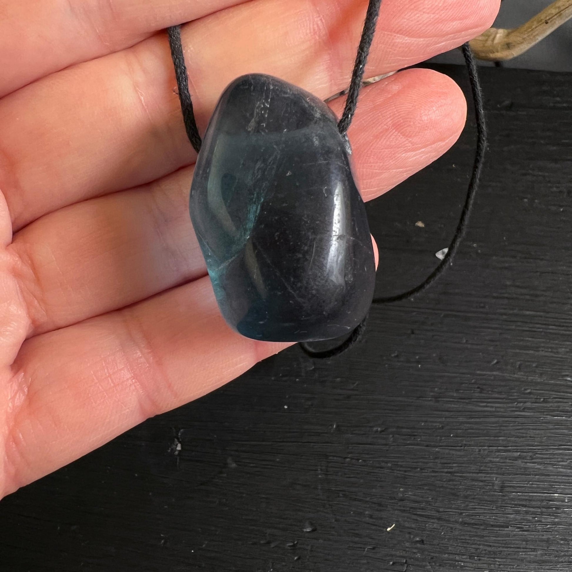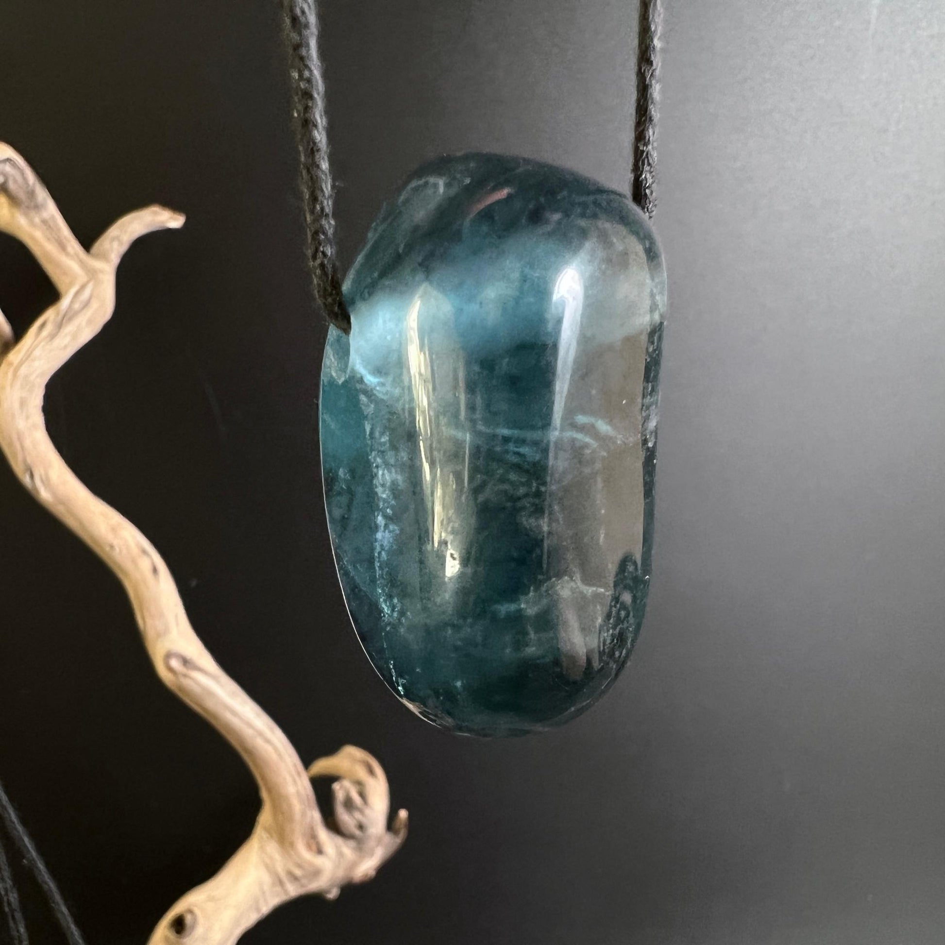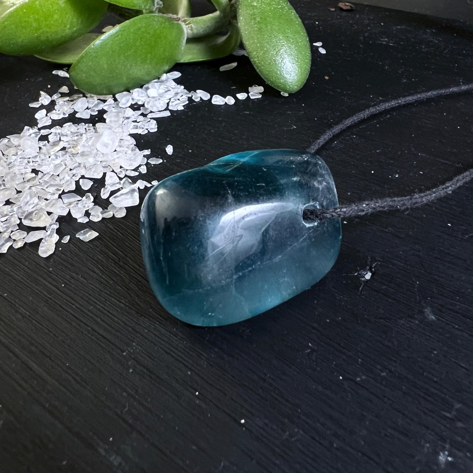 Blauer Fluorit Anhänger 35mm | Gebohrter Trommelstein| Klarheit und Fokus