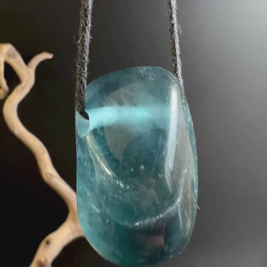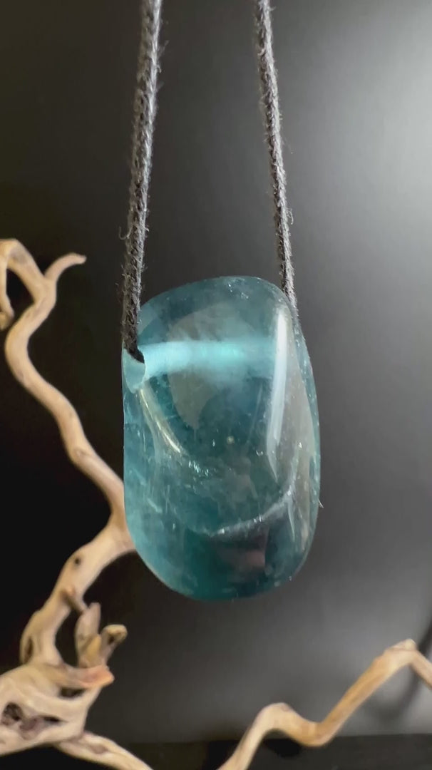 Dieser blaue Fluorit Anhänger schimmert wie Meeresleuchten zwischen deinen Fingern. Im Licht offenbart er seine ganze Magie: tiefes Ozeanblau fließt in kristallklare Zonen über, durchzogen von sanften Schlieren wie Strömungen unter Wasser. Mit 32 Gramm hat er ein angenehmes Gewicht – spürbar, aber nicht schwer – und liegt wie ein kühler Kiesel auf deiner Haut. Ein Stein, der dich sofort runterbringt, wenn der Kopf mal wieder zu viel denkt.